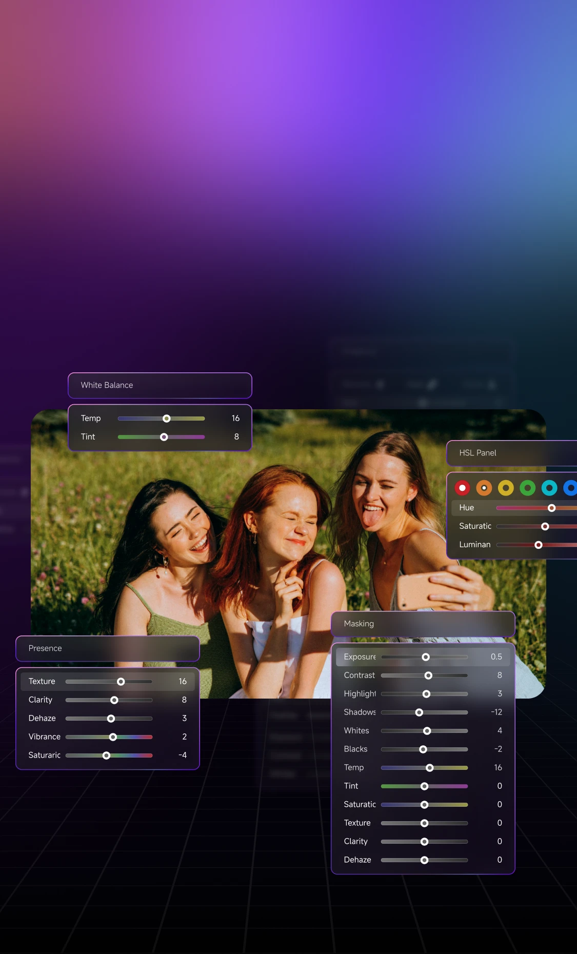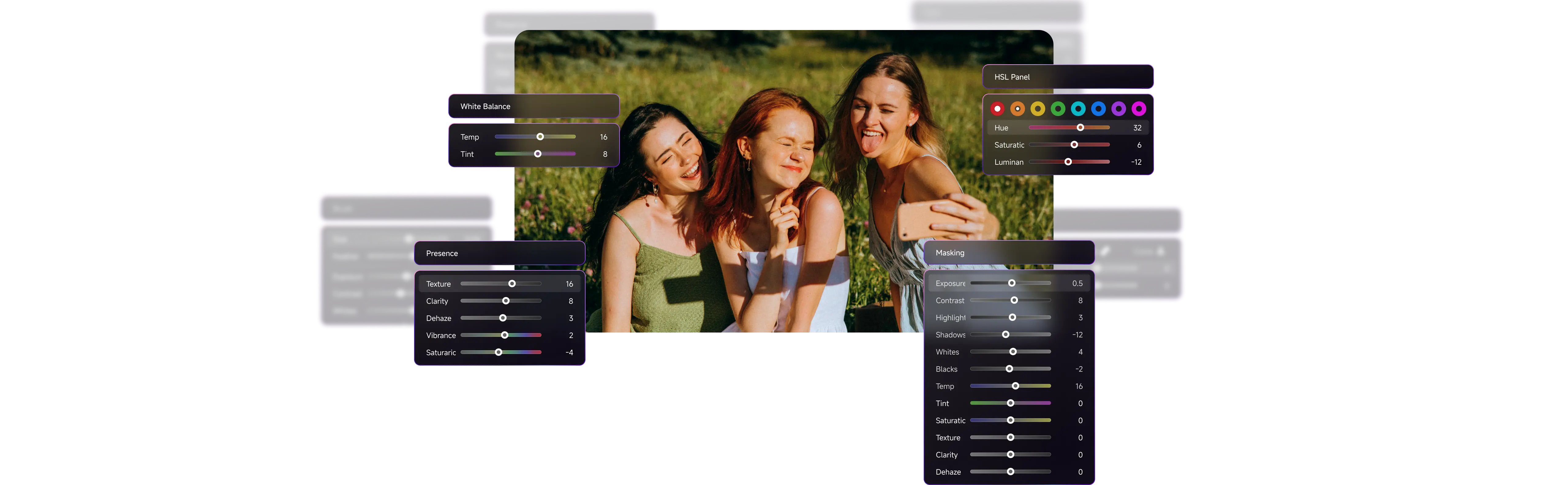 切换到蒙版/移除工具,立即自动打开对应调色面板。 跟着你的调色节奏,无感进入当前调色流程。